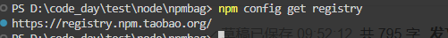 上图看出本地终端是淘宝镜像,所以要切换当前镜像为npm