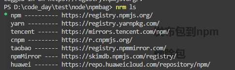 第一次上传包之前,终端输入 nrm use npm,确保切换镜像源为npm