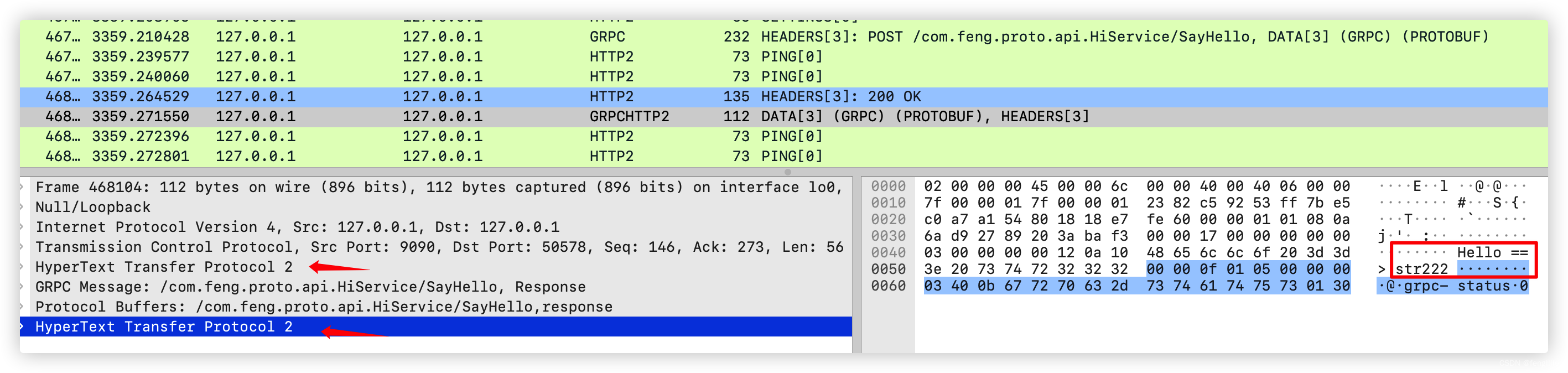 发送请求,抓包,成功还原 http2 grpc 的设计理念