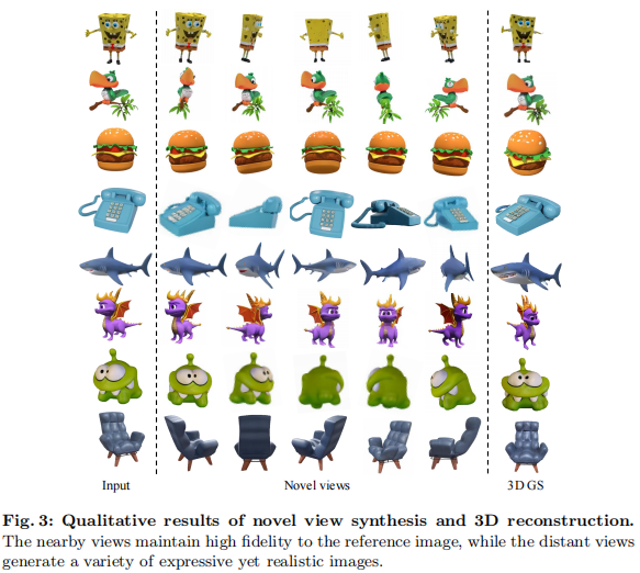 - FDGaussian:几何结构完整、纹理细节清晰、多视角完全一致。