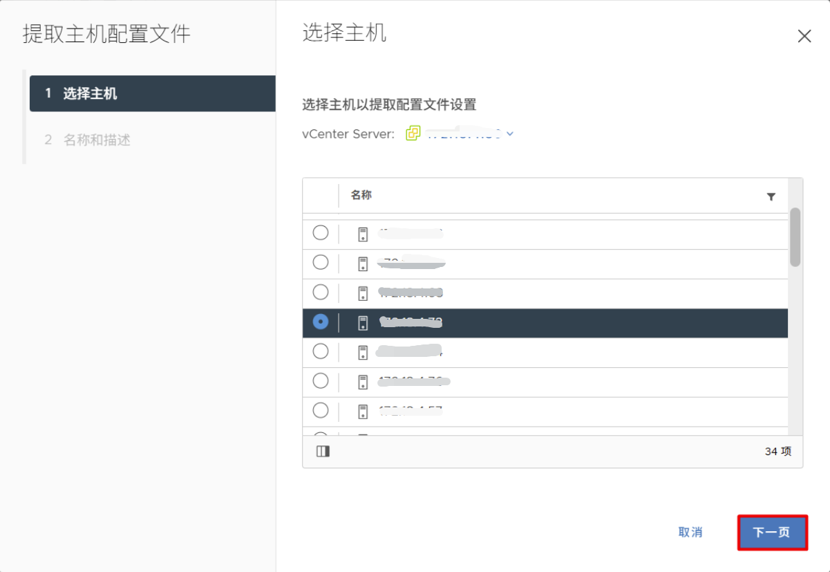 - 在“提取主机配置文件”向导中选择受影响的主机