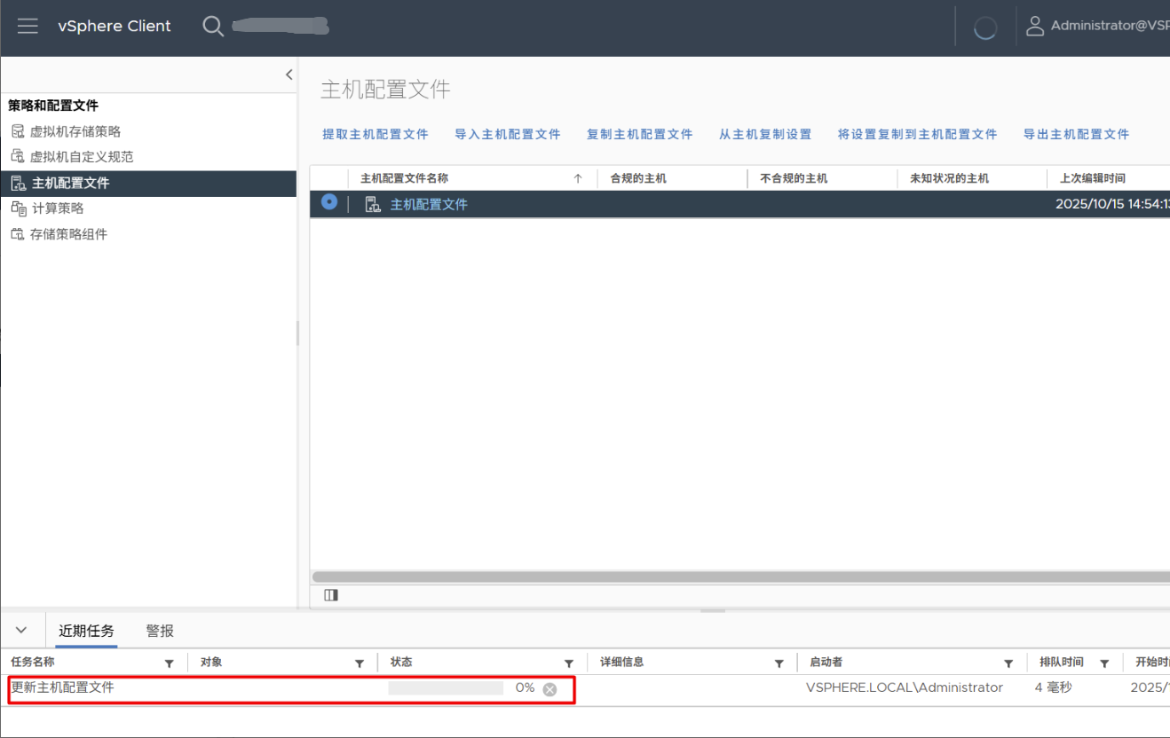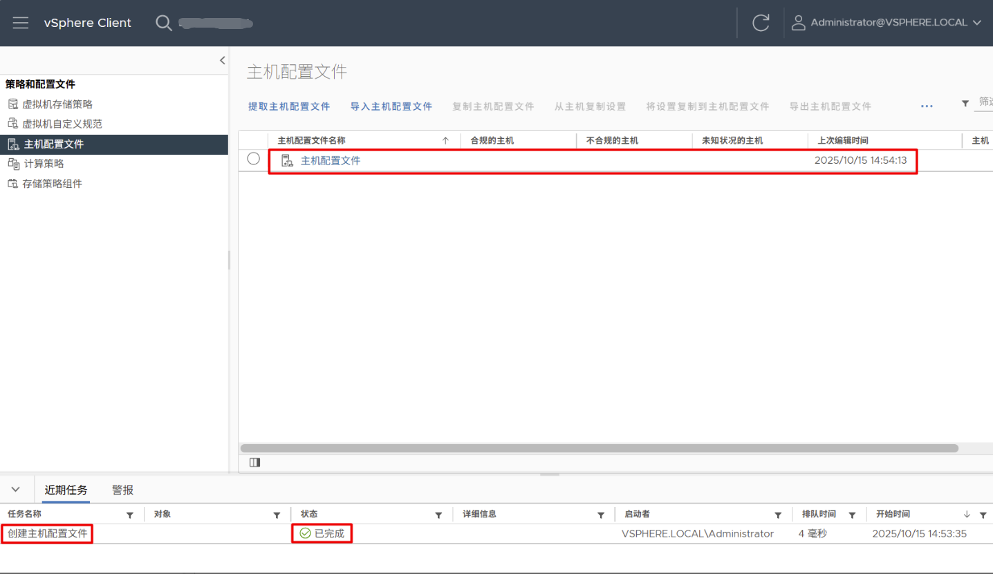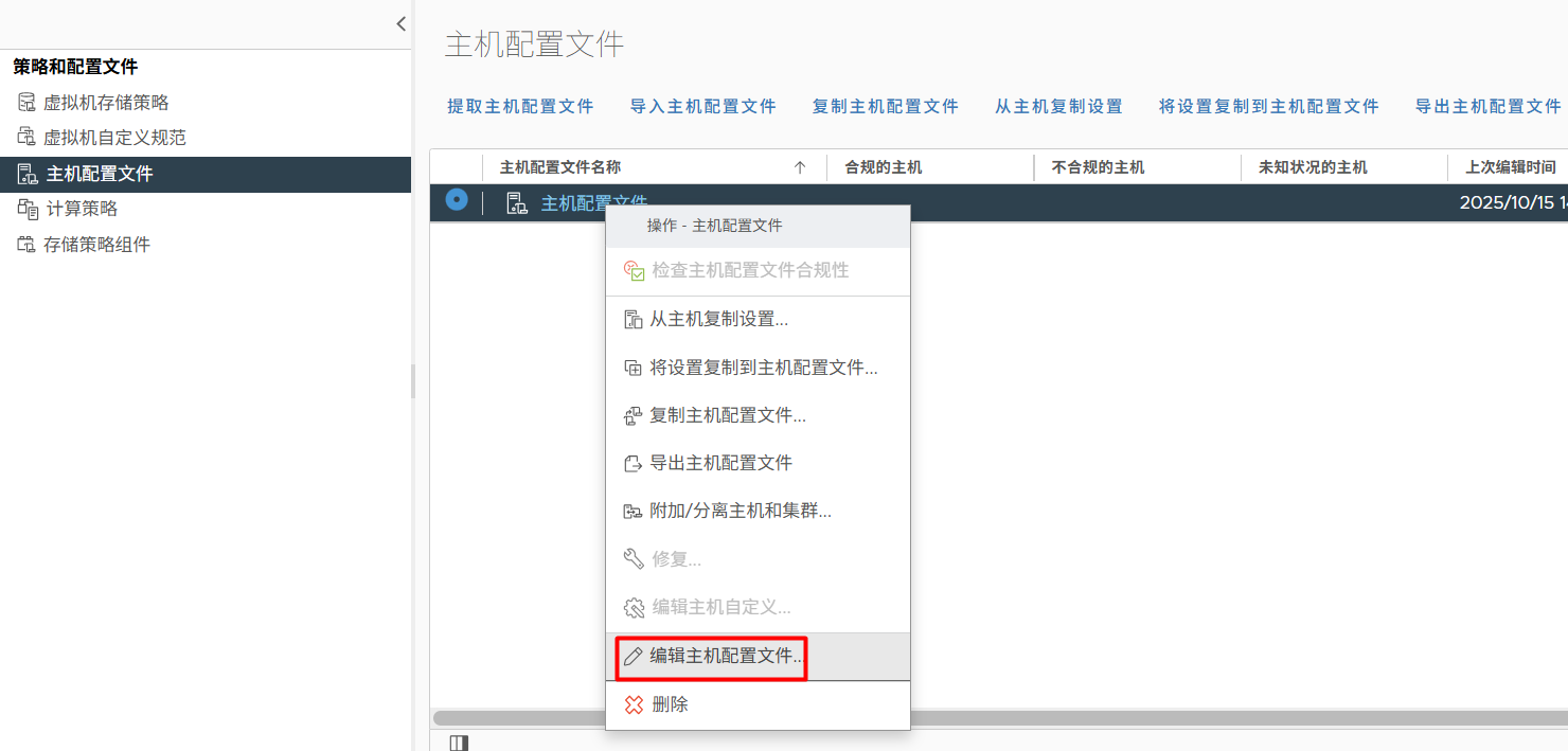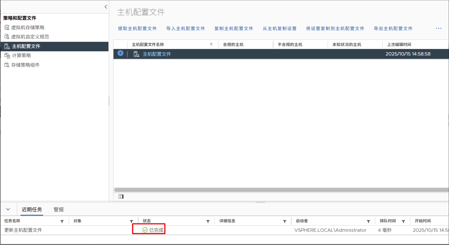 - 要确认成功,请右键单击主机并选择主机配置文件>检查主机配置文件合规性。