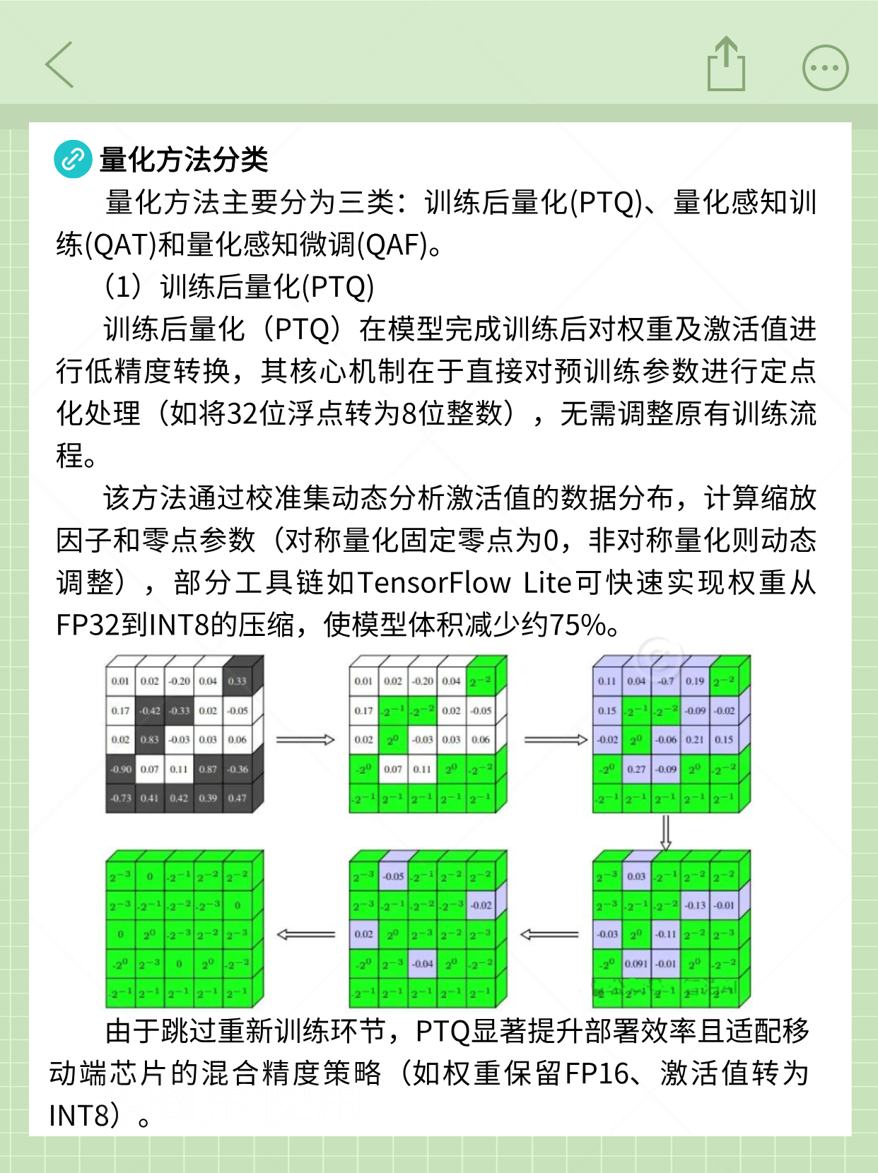 大模型-模型压缩:量化、剪枝、蒸馏、二值化 (1)一、模型压缩概述1.模型压缩的必要性2.模型压缩的目标二、量化1.量化原理2.量化方法分类3.量化的优势与局限三、剪枝1.剪枝原理2.剪枝方法分类3.剪枝的优势与局限四、蒸馏1.蒸馏原理2.蒸馏方法流程3.蒸馏的优势与局限五、二值化1.二值化原理2.二值化方法应用3.二值化的优缺点