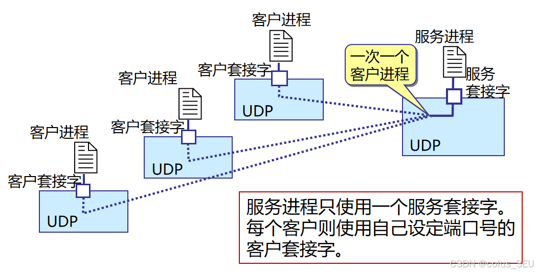 服务进程收到客户进程的请求后,就发送UDP用户数据报响应该客户