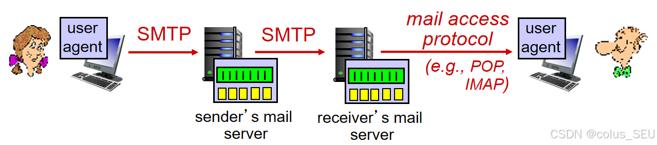 定义:应用层协议定义了运行在不同端系统上的应用程序进程如何相互传递报文。它精确规定了: