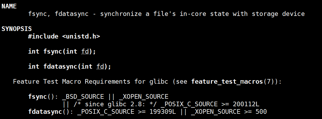 内核文件缓冲区的内容,可以通过fsync接口强制的刷新到外部硬件中: