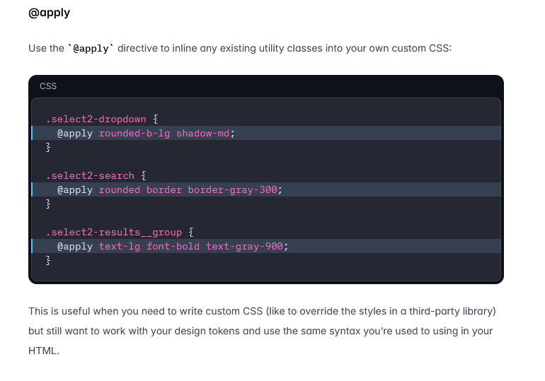 https://tailwindcss.com/docs/functions-and-directives#apply-directive