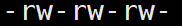 前三个字符对应拥有者的权限,中间三个字符对应所属组的权限,后三个字符对应other对应的权限。完整权限示例:rwx--读、写、执行