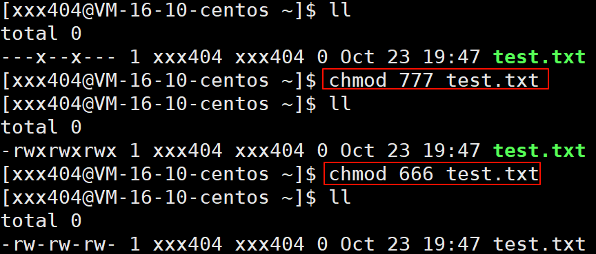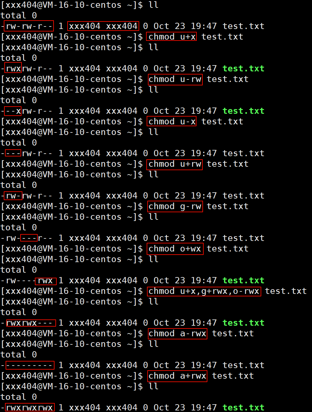 注意:权限不能限制root:当chmod u-rwx后,拥有者对文件什么操作都不能进行,但是root依旧可以读写执行。