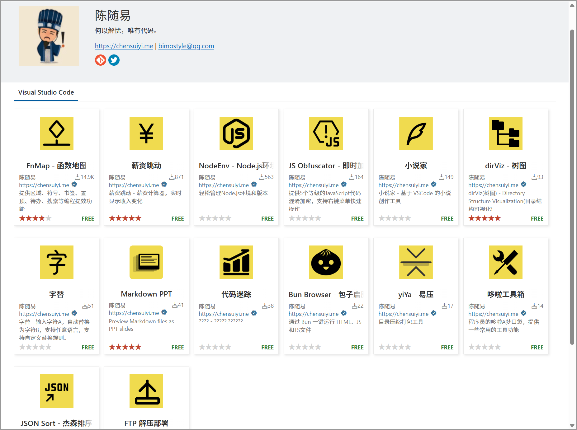 👉 https://marketplace.visualstudio.com/publishers/chensuiyi