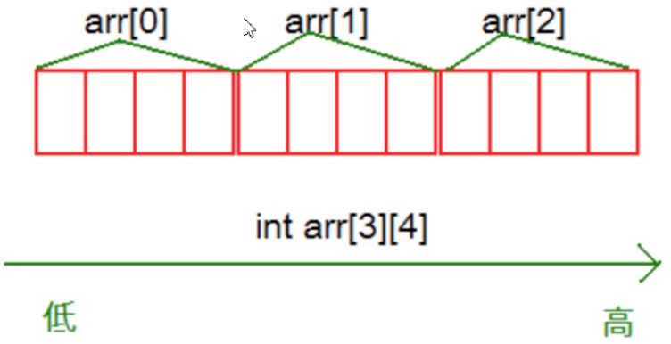 结论:二维数组在内存中也是连续存储的,如下图所示: