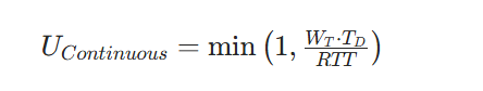 如果一次打包\(W_T\)个包裹的总时间(≥ 往返时间(RTT),意味着 “在等第一个包裹签收单的路上,已经把所有包裹都发完了”,信道全程忙碌。