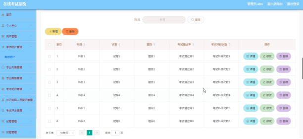 考试统计管理:系统管理员可以查看对考试统计进行添加,修改,删除以及查询操作。