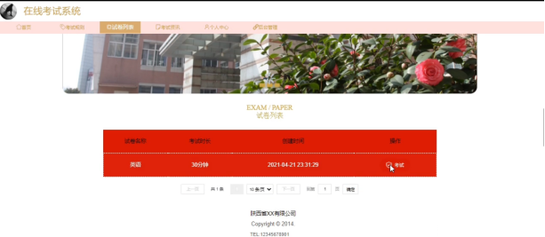用户登录后可以在首页点击试卷列表,就可以看到试卷信息,可以选中试卷信息进行考试操作。界面如下图所示: