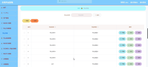 专业列表管理:系统管理员可以对专业列表信息进行添加,修改,删除以及查询操作。
