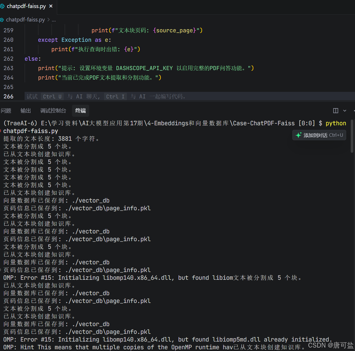 else:print("提示: 设置环境变量 DASHSCOPE_API_KEY 以启用完整的PDF问答功能。")print("当前已完成PDF文本提取和分割功能。")