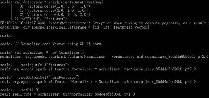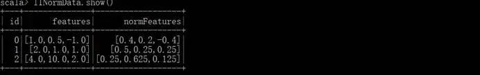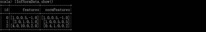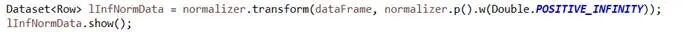 设置p=infinity,执行特征转换,输出数据标准化的向量数据集合: