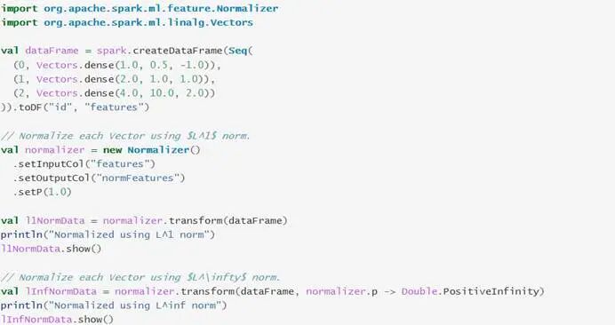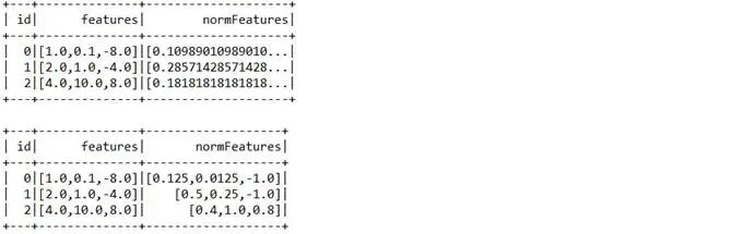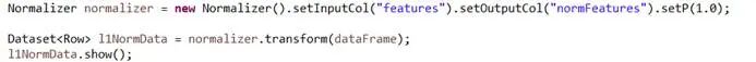 Normalizer算法用于处理数据标准化以及规范化,缩小数据元素之间的范围差距,让数据元素保持在[-1,1]范围内,更加易于执行数据分析,例如,给定一个向量数据集合以及指定一个参数p,输出数据标准化的向量数据集合。