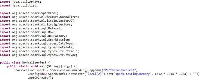 在Java本地开发环境中,创建Normalizer算法测试类,初始化spark实例: