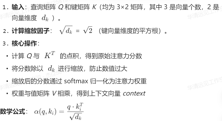 - 点积注意力:直接算查询向量与键向量的点积,点积越大相似度越高,计算高效。