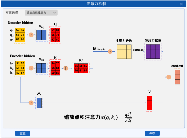 context, attn_weights = attention(Q, K, V)print("缩放后的注意力权重矩阵:\n", attn_weights)