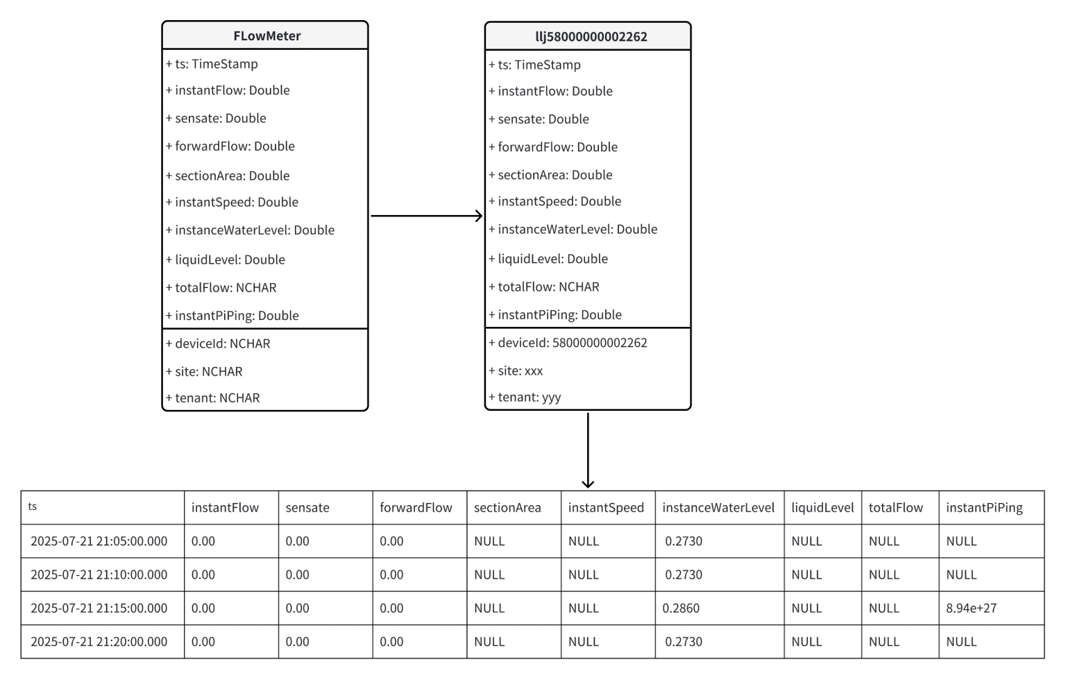 以流量计为例,创建超级表 FlowMeter,即可对所有同类设备的数据进行标准化建模,简化了管理流程并提升了查询性能。