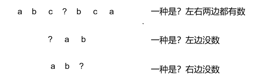 那我们可以遍历字符串,在遇到?时候,要放入的小写字母不能跟当前位置的前一个位置和后一个位置的小写字母相同,这里开头是?的话就只用比较右边的那个字符,结尾是?的话就只用比较左边的那个字符。