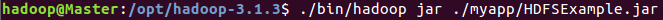 ./bin/hadoop jar ./myapp/HDFSExample.jar