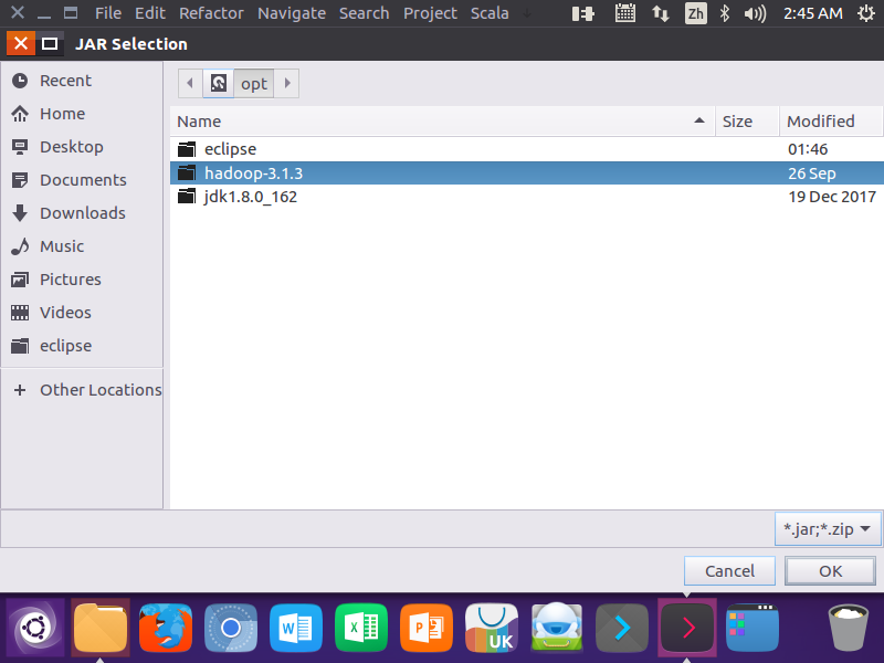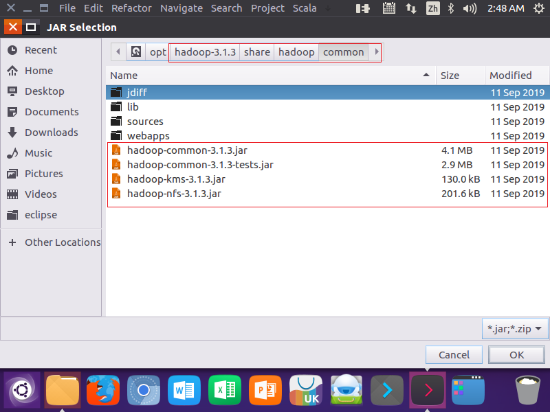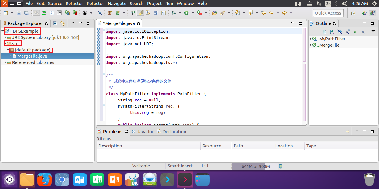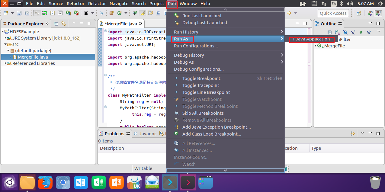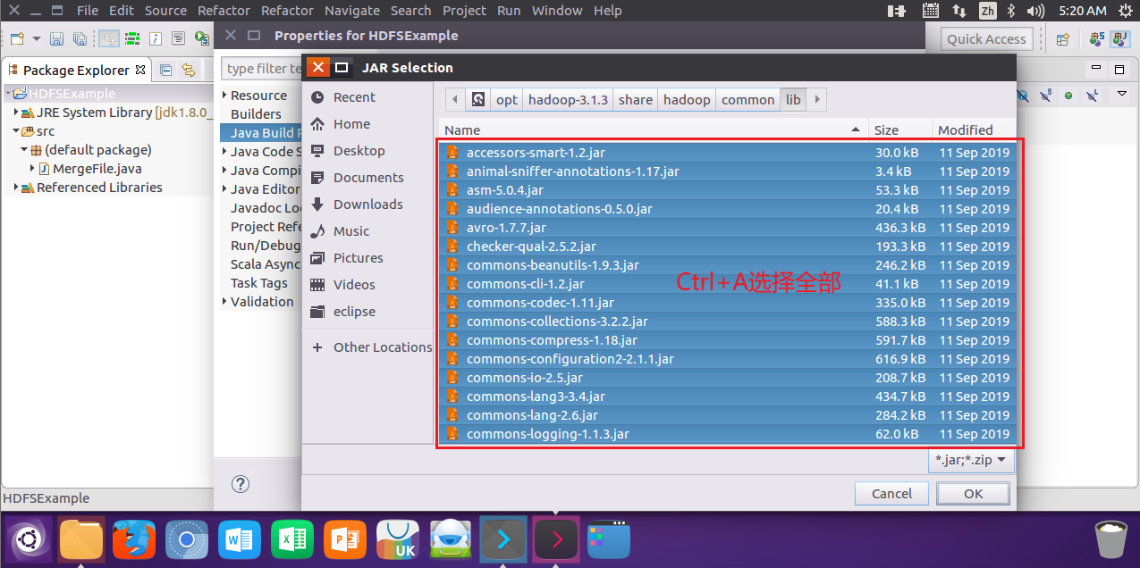 2.开始编译前确保HDFS的hadoop目录下存在file1.txt、file2.txt、file3.txt、file4.abc、file5.abc,且文件里面有内容