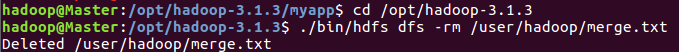 ./bin/hdfs dfs -rm /user/hadoop/merge.txt