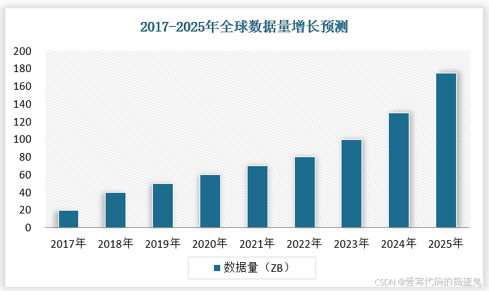 随着物联网、边缘计算等智能终端设备不断普及,受到来自物联网设备信号、元数据、娱乐相关数据、云计算和边缘计算的数据增长的驱动,全球数据量呈现加速增长。根据 IDC 分布的《数据时代 2025 》预测,全球数据量将从 2018 年的 33ZB 增至 2025年的 175ZB ,增长超过 5 倍;中国平均增速快于全球 3% ,预计到 2025 年将增至48.6ZB ,占全球数据圈的比例由 23.4% 提升至 27.8% 。其中,中国企业级数据量将从2015 年占中国数据量的 49 %增长到 2025 年的 69 %。