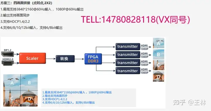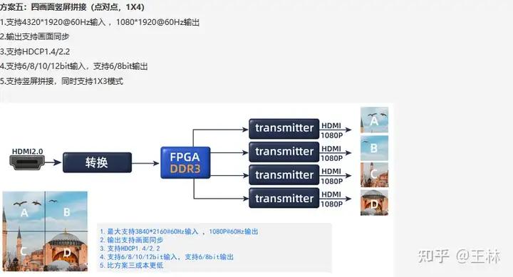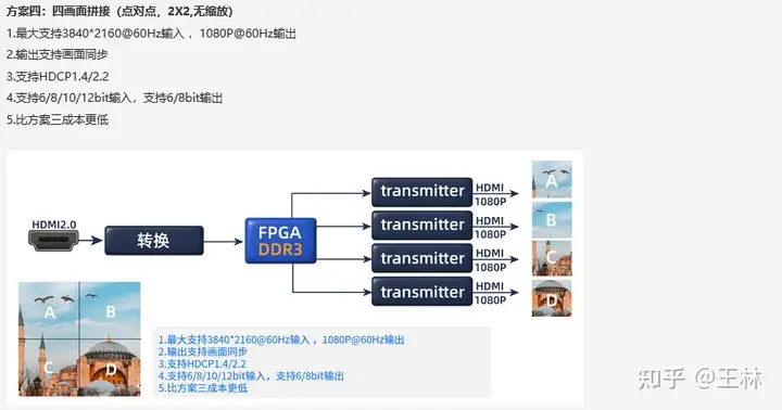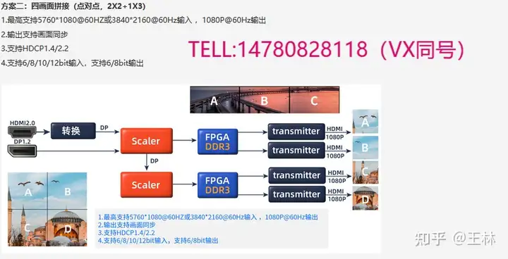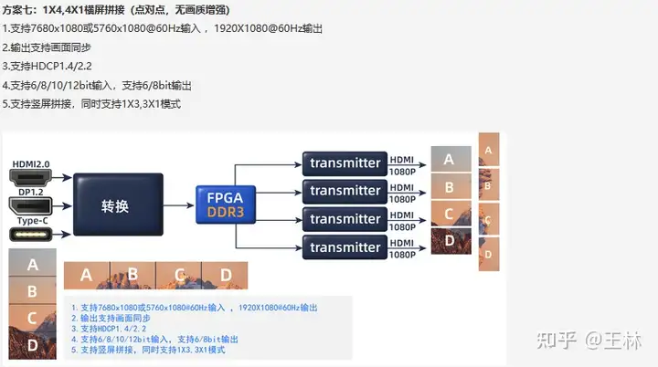 FPGA的硬件可编程特性,使其能够完美适配各种复杂的拼接需求。无论是常规的横屏拼接、适应手机App展示的竖屏拼接,还是1x4、4x1、2x2等任意组合方式,都能通过FPGA设计实现“点对点、无缩放”的精准显示,完美保持图像原貌。