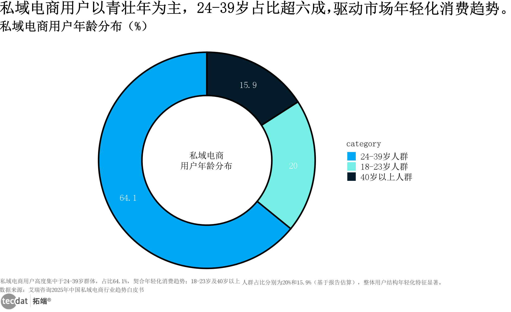 | 私域电商 | 24-39岁用户占比64.1% | 艾瑞咨询《2025年中国私域电商行业趋势白皮书》 | 社群运营、品牌方 |