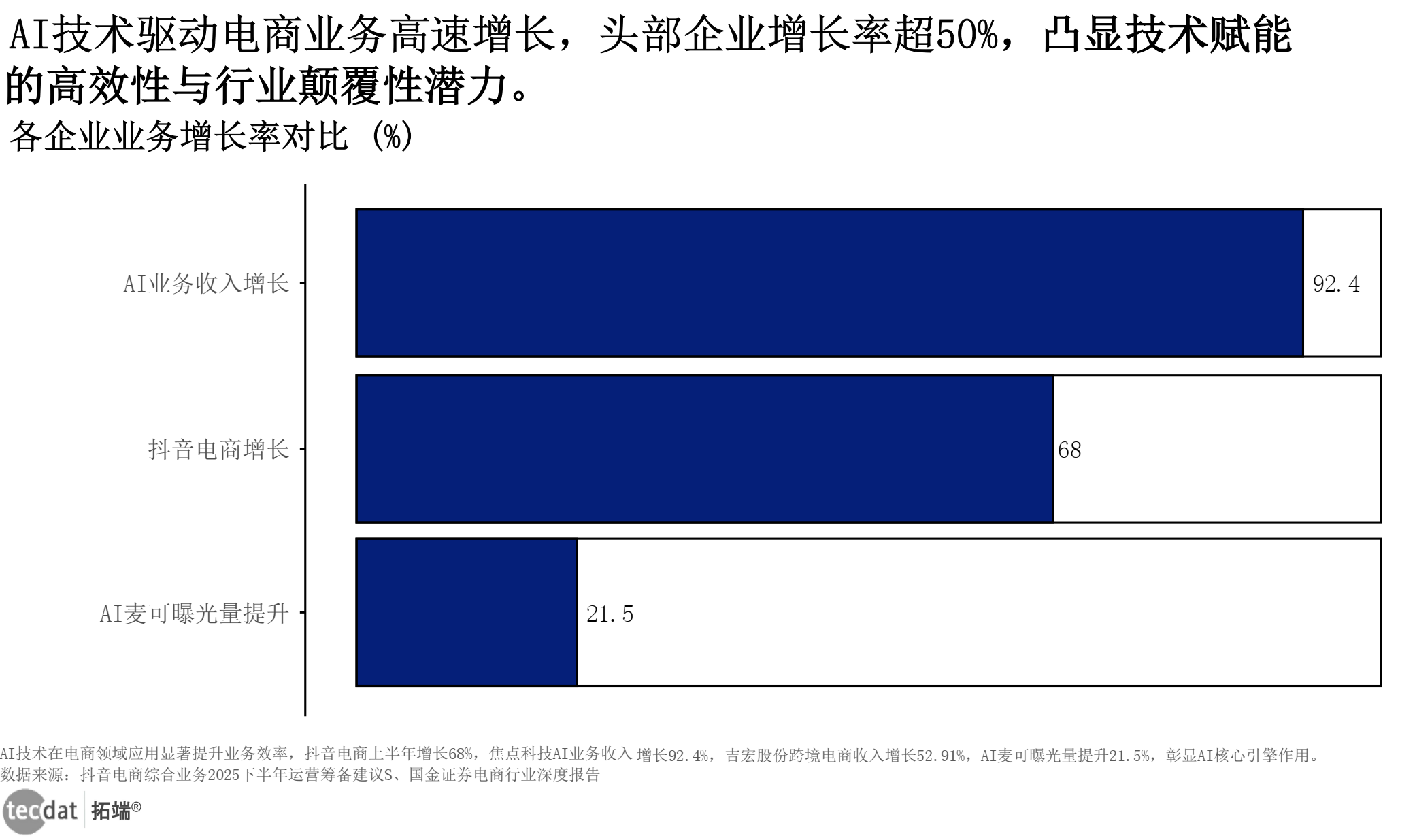 | AI电商 | 焦点科技AI业务收入增长92.4% | 国金证券《电商行业深度报告-AI+电商服务进入提效阶段-关注后续业绩兑现》 | 跨境电商、科技公司 |