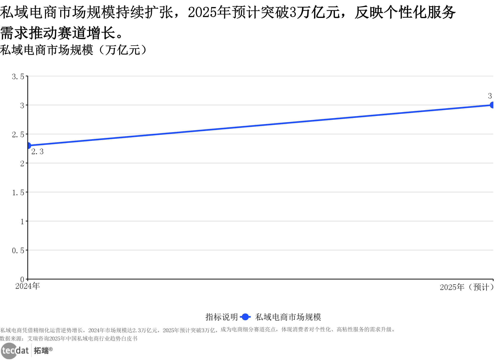 | 私域电商 | 2025年预计规模3万亿元 | 艾瑞咨询《2025年中国私域电商行业趋势白皮书》 | 全品类商家、创业者 |