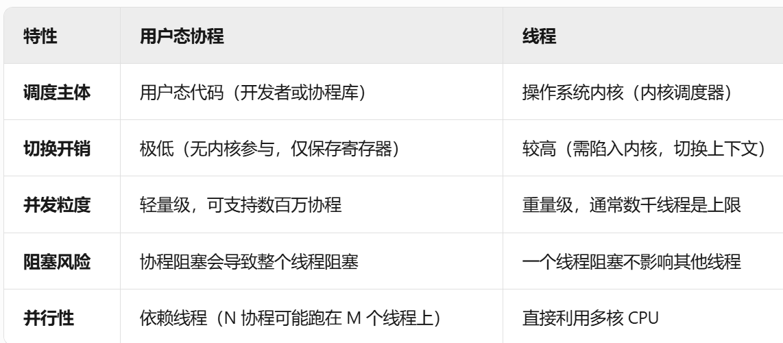 - 线程切换实现用户态协程