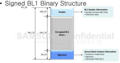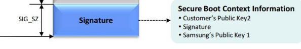 如下图所示,BL1 的第三部分,这里放了客户和三星的公钥以及签名文件。