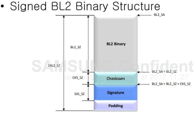 需要注意的是,用户的 BL1 和 BL2 是没有经过 secure boot 的,也就是没有的安全认证内容,但是 BL1 和 BL2 本身还是安全的,三星提供了安全保障,BL1 不再对 BL2 进行 secure 认证了。