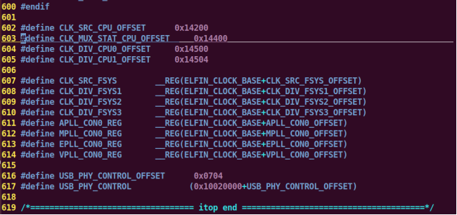#define VPLL_CON0_REG __REG(ELFIN_CLOCK_BASE+VPLL_CON0_OFFSET)#define USB_PHY_CONTROL_OFFSET 0x0704