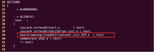 回到源码顶层目录,打开board/samsung/itop4412/lowlevel_init_SCP.S,在_TEXT_BASE上方添加如下时钟初始化相关内容: