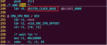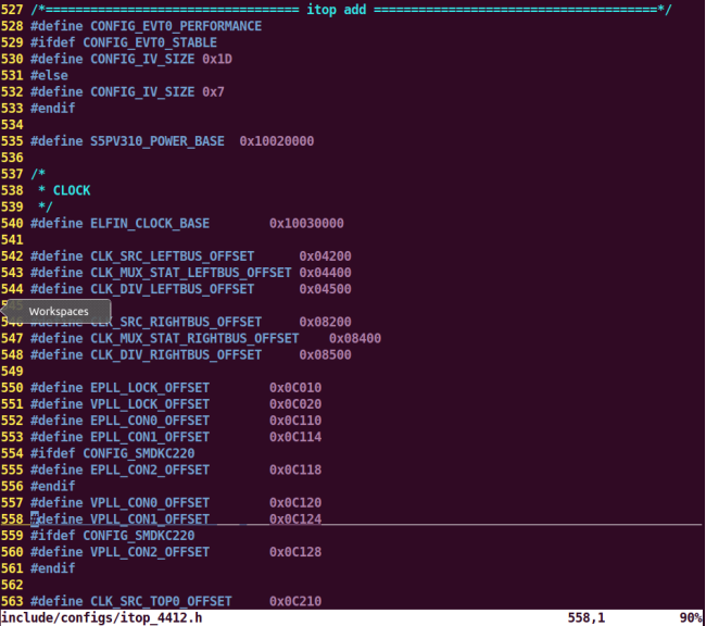 找到system_clock_init函数,将里面CMU_BASE改为ELFIN_CLOCK_BASE,ELFIN_CLOCK_BASE在include/configs/itop_4412.h中定义,改完后如下图:
