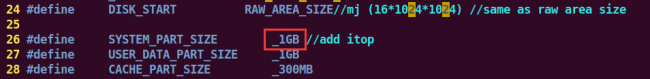 回到源码顶层目录,打开common/cmd_mmc_fdisk.c,这个文件里包含了分区操作函数,找到第26行SYSTEM_PART_SIZE宏定义,改为