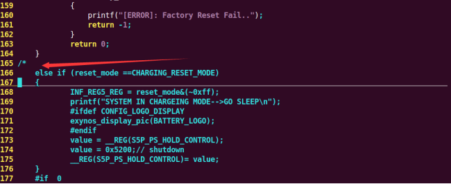 回到顶层源码目录,打开cpu/arm_cortexa9/s5pc210/recovery.c文件,注释掉165到268行,