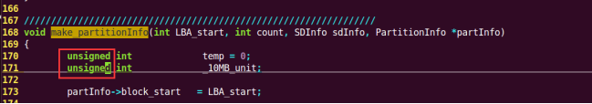 使用int类型不能正常进行分区,改为无符号整型unsigned int类型,修改如下三个地方: