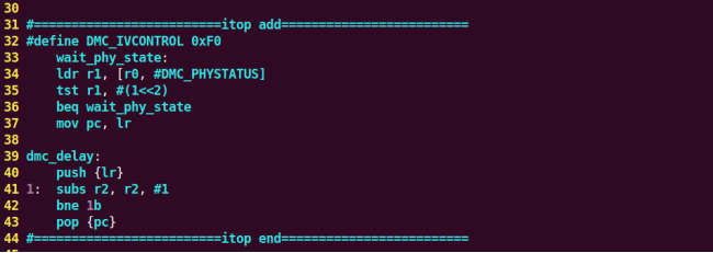 wait_mux_state:ldr r1, [r0, r2]cmp r1, r3bne wait_mux_statemov pc, lrwait_pll_lock:ldr r1, [r0, r2]tst r1, #(1<<29)beq wait_pll_lockmov pc, lrwait_phy_state:ldr r1, [r0, #DMC_PHYSTATUS]tst r1, #(1<<2)beq wait_phy_statemov pc, lr如下图:
