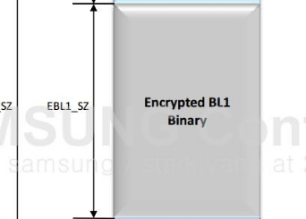 然后是 BL1 的第二部分,如下图所示。就算第一部分能作假,看下 BL1 的第二部分Encrypted BL1,实际就是经过加密的 BL1 代码,在 Uboot 中这部分没有源码,只有二进制文件,这段二进制文件由三星提供。