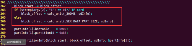 if (flag)block_offset = calc_unit((unsigned long long)simple_strtoul(argv[4], NULL, 0)*1024*1024, sdInfo);else{if (strcmp(argv[2], "1") == 0)// TF cardblock_offset = calc_unit(_300MB, sdInfo);else如下图: