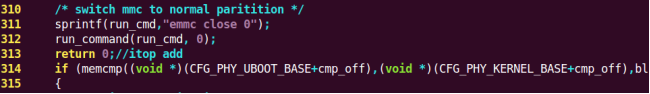 到313行,添加“return 0”,执行完run_command后返回,如下图:
