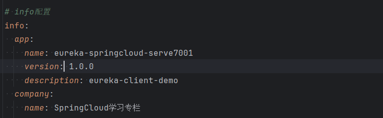 - 配置application.yaml,注意是哪个,如果是想要看到服务提供者的info信息的场景,将信息更新到8001的端口下的application.yaml下,依赖同上;