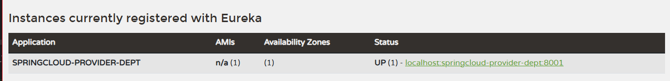 - 启动成功,Eureka服务启动成功,没有检测到8001的服务供应商